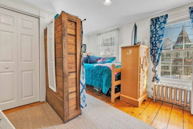 Spring House is a cozy, quaint second-story apartment in downtown Dover that exudes simplicity, beauty, and warmth, and has rooms loaded with soft colors and comfort. The home features stunning hardwood throughout (including several rooms with original wide-planked flooring), four bedrooms, two full baths, a combined living room and kitchen, rustic furnishings, and ample parking.